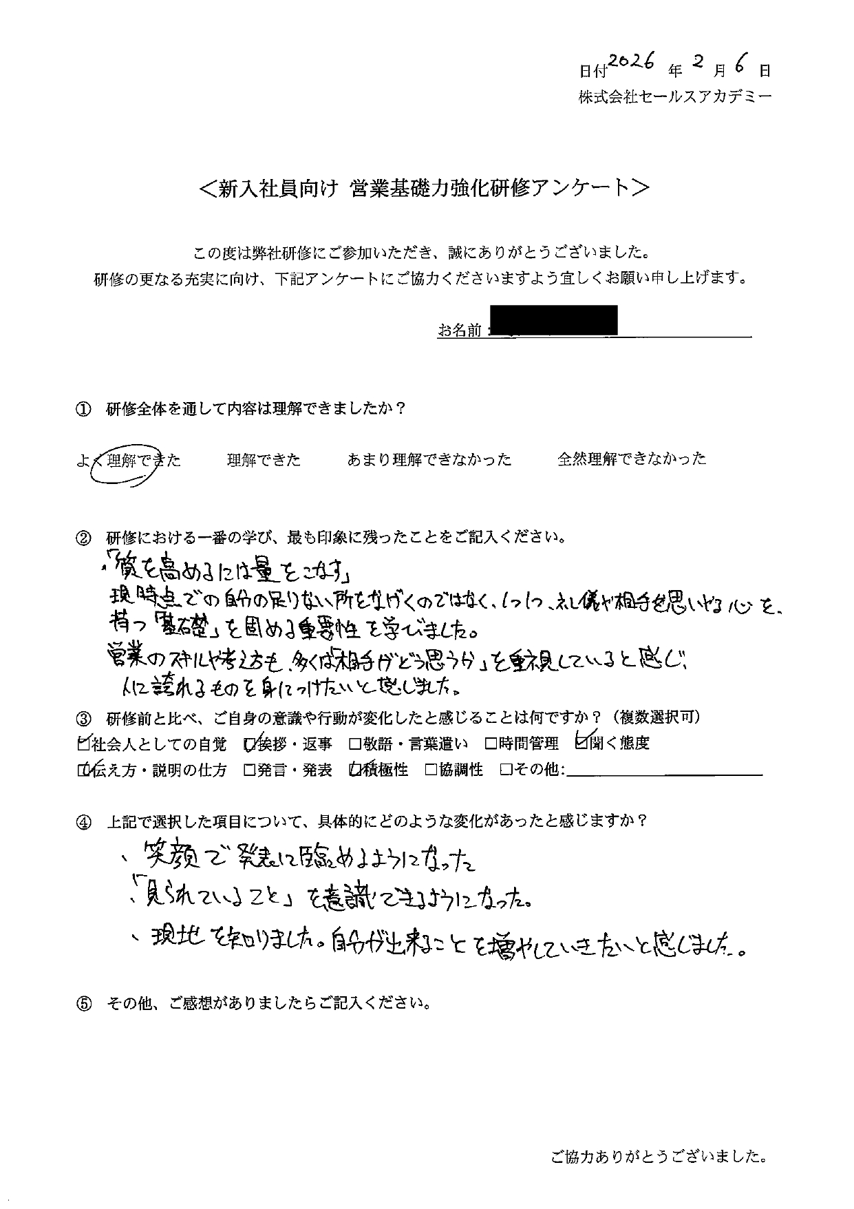 営業のスキルや考え方も、多くは「相手がどう思うか」を重視していると感じ、人に誇れるものを身につけたいと感じました。